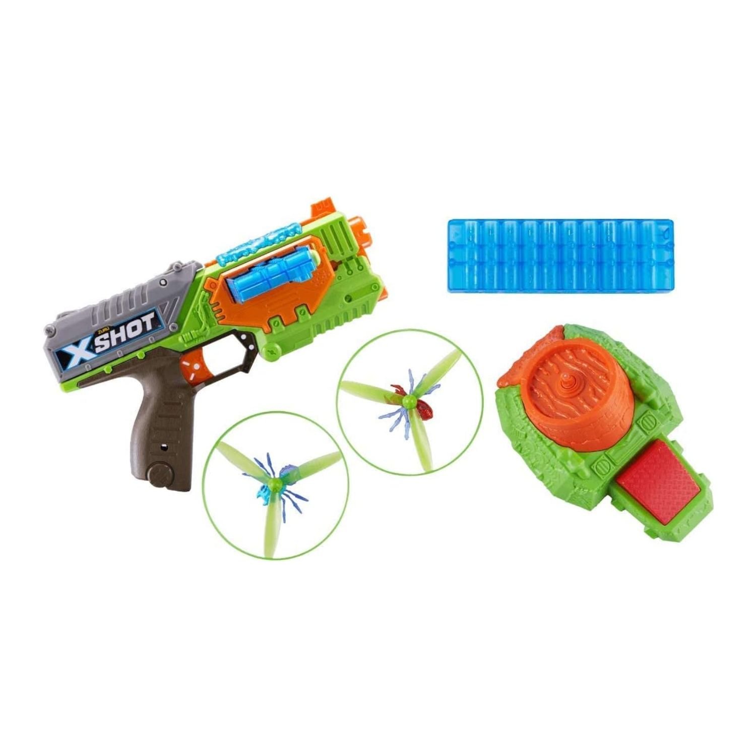 - Combination of dart blaster, bug launcher & flying bugs